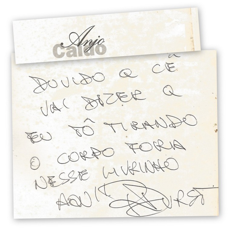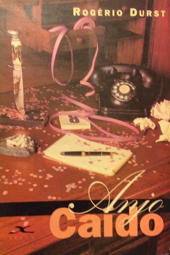 Capa, dedicatória e contra-capa de “Anjo Caído” (editora Xenon, 1996); capa por Isabella Perrotta; foto por Ana Branco