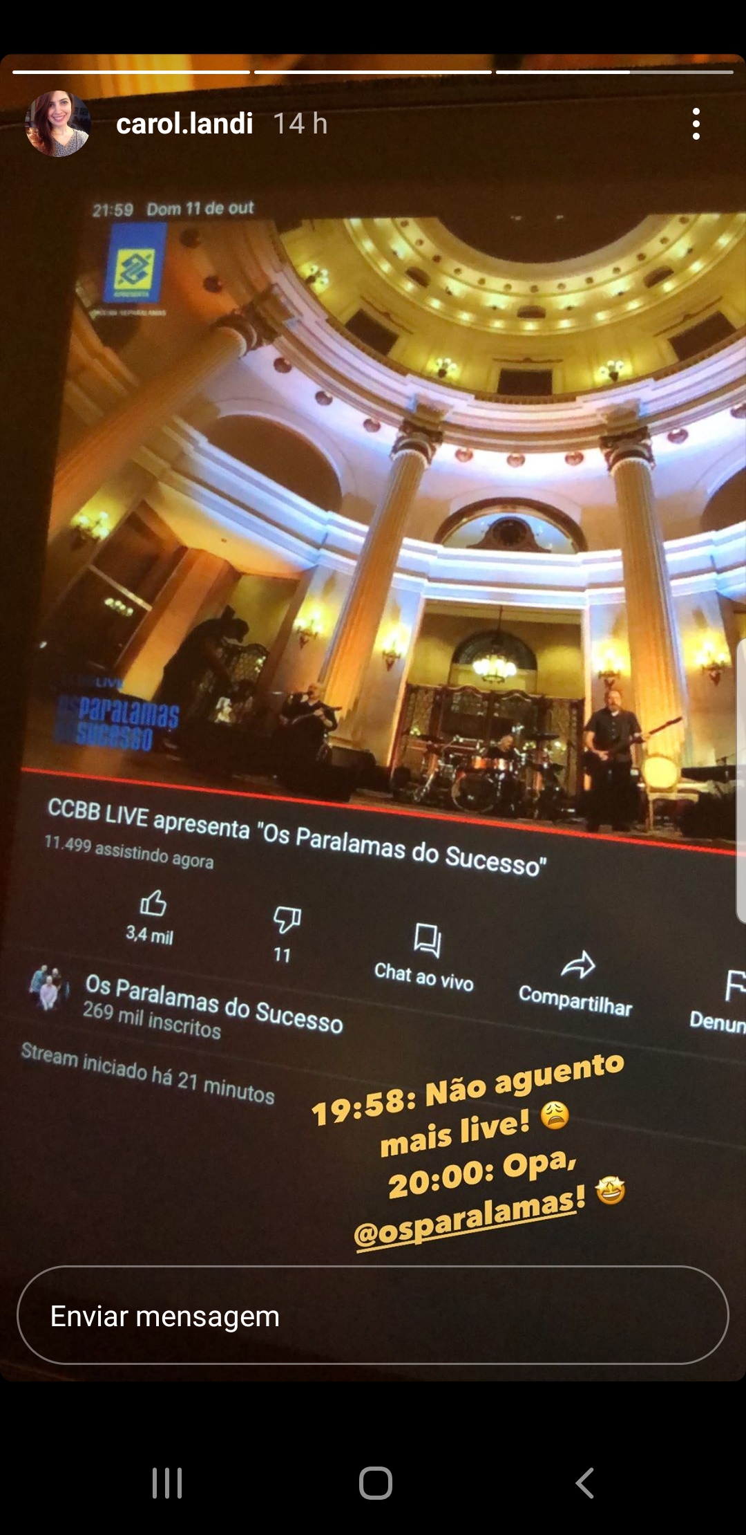 Um outro fã-clube que está em alta aqui em casa, mais até do que o de Sean e John Lennon, é aquele dedicado aos Paralamas do Sucesso. Isso significa ter de assistir a todas as apresentações remotas que os PDS têm feito. E são lives que eu conheço bem, pois as venho acompanhando desde que se iniciaram lá na Souza Lima no apartamento de uma ex-funcionária do Banco do Brasil que, agora sabemos, levava sempre o Bi Ribeiro como companhia para checar o saldo de sua conta bancária na agência da Primeiro de Março do BB (hoje CCBB) em que trabalhou e em cujo belo hall de entrada o grupo se apresentou no último domingo.