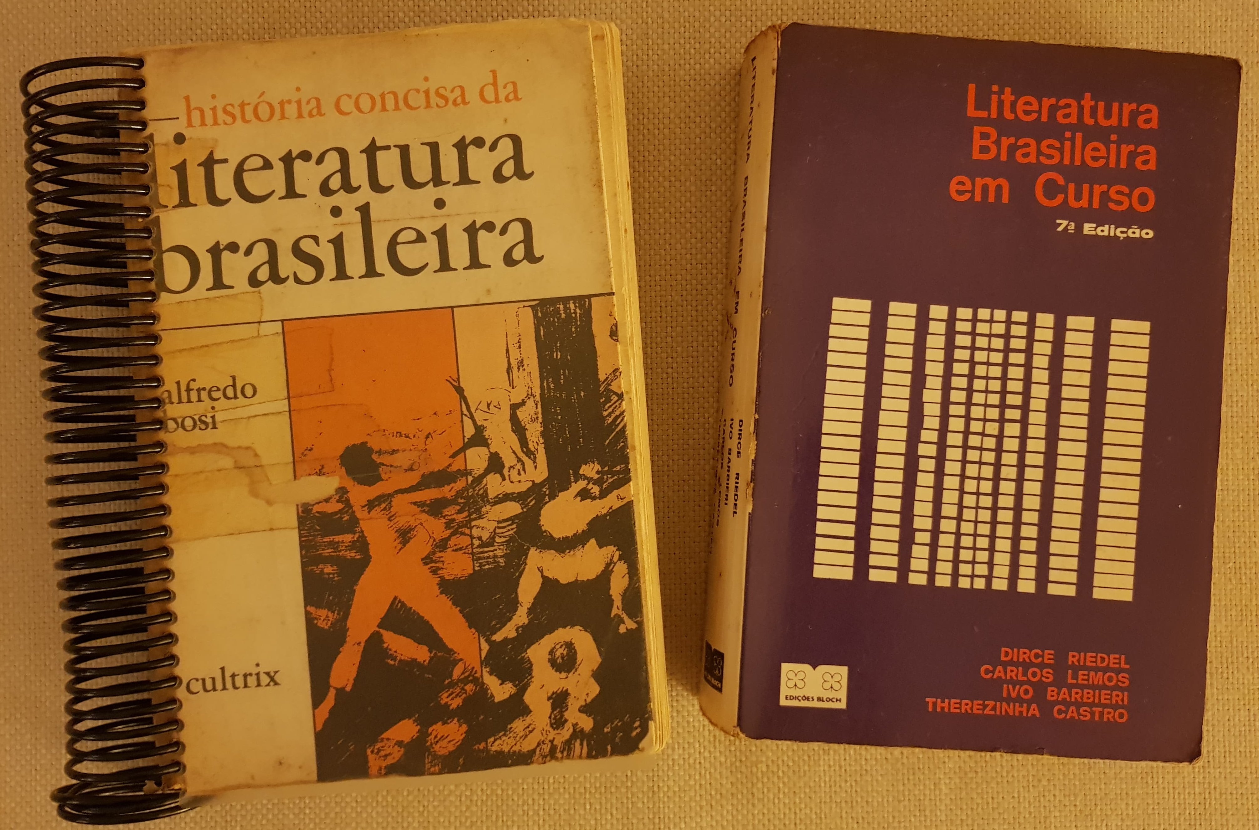 O problema é que a presença das apostilas fez com que esse item fundamental em toda aprendizagem que são os livros sumisse das salas de aula. Para as turmas do primeiro ano de 1976, o professor Ivan, de português e literatura, solicitou que fossem comprados apenas dois livros didáticos: “História Concisa da Literatura Brasileira”, de Alfredo Bosi, e “Literatura Brasileira em Curso”, antologia de textos organizada por Dirce Riedel, Carlos Lemos, Ivo Barbeiri e Therezinha Castro. O “História Concisa” me acompanharia até o doutorado e segue sendo muito útil. Apresenta um resumo da história de nossa literatura, toda ela redigida em uma prosa fluente e estilisticamente primorosa. Traz uma pequena biografia em notas de pé de página para cada autor comentado e não deixa de alçar voo para, na tradição do melhor ensaísmo, marcar, sem maiores alardes, a posição do autor no que toca à criação literária em uma nação que deixou há pouco de viver uma das mais cruéis experiências colonialistas amparada numa não meus cruel cultura escravocrata.