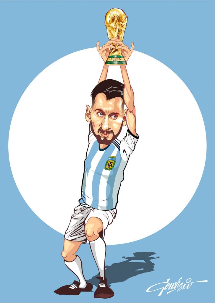Foi a Copa dos inacreditáveis 220 bilhões de dólares (um trilhão e borodoada de reais), disputada fora de época em um país autocrático em que mulher, gay e apreciadores de destilados e fermentados alcoólicos são tratados aos pontapés. Direitos humanos? Esqueça. Enfim, no plano político-cultural foi a Copa da vergonha. Em campo, faltou muito talento para termos um espetáculo de maior impacto, à exceção do brilho trazido por parte dos dois craques que se enfrentaram na final com times que tiveram que calibrar seu desempenho para se igualarem a eles e não fazerem feio. E a final entre Argentina e França elevou de fato o nível da competição com um jogaço, cheio de reviravoltas e que tranformou a decisão em uma daquelas partidas memoráveis como não se via há muito tempo. Parabéns a Messi e Mbappé pelo show que proporcionaram. O cartunista Gervário Castro Neto registrou com seu traço único e irreverente toda a Copa. Fez também a gentileza de ceder suas certeiras criações para ilutrarem essa postagem.