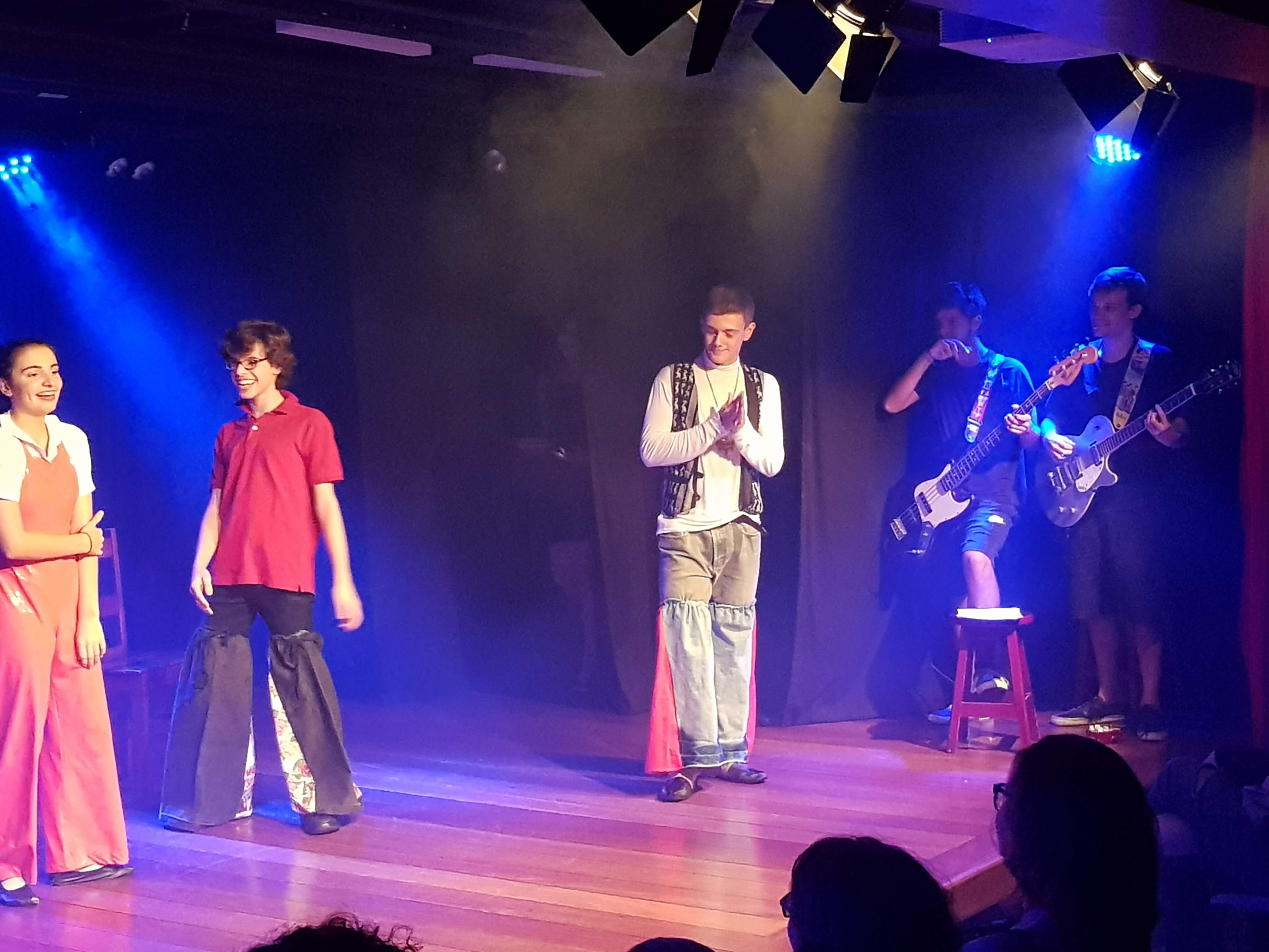 Na encenação de “Bailei na Curva” com o grupo TACA do Colégio Andrews