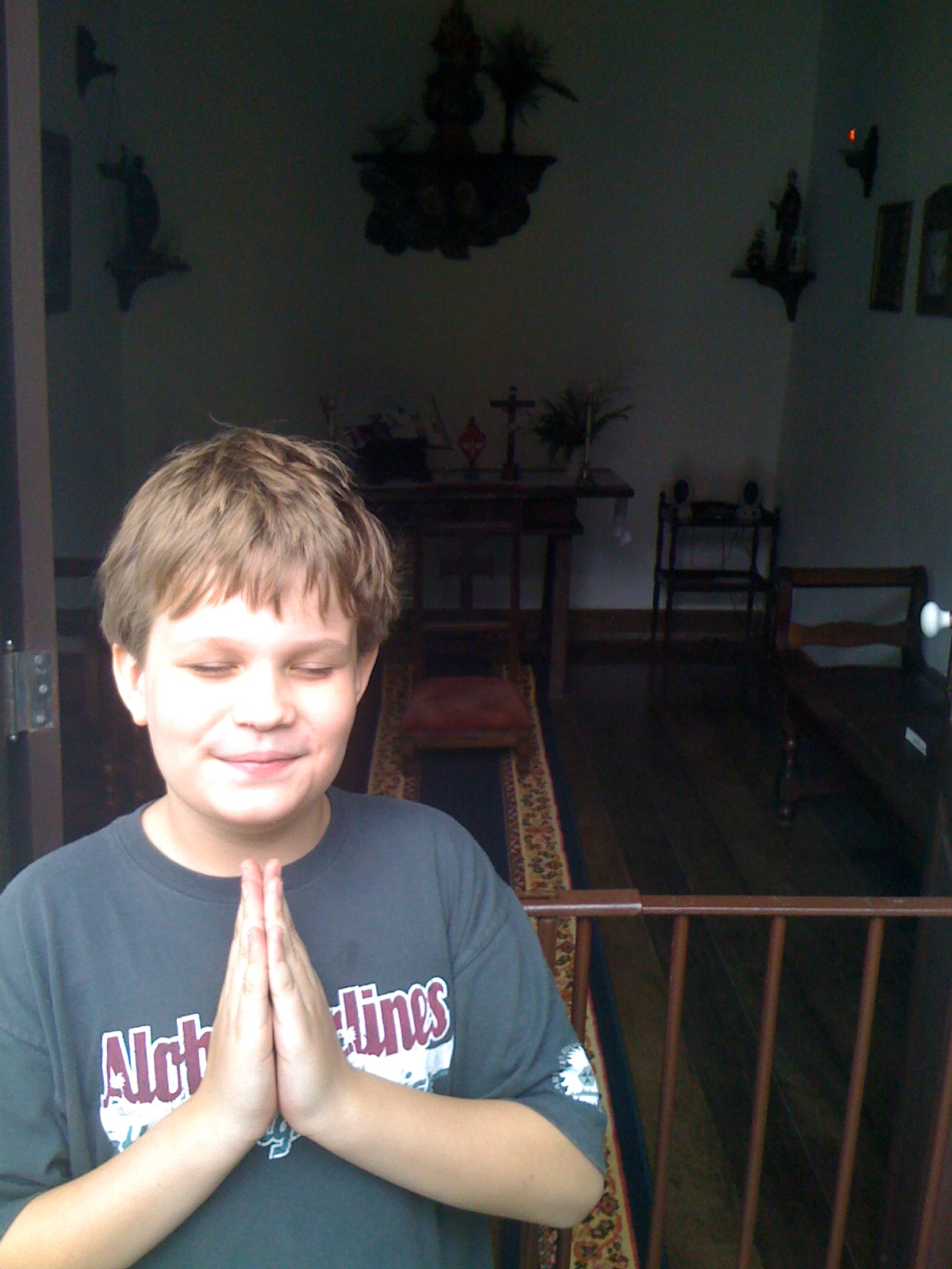 Fazendo graça na capelinha da casa de seus bisavós em Petrópolis