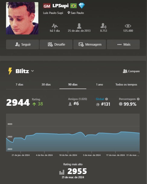A avaliação de ratings no Chess.com é extremamente precisa. Magnus Carlsen, 33 anos, aquele que foi o número 1 do mundo durante anos em xadrez convencional (90 minutos em jogo pensado) até desistir de se candidatar e passar a vez para o chinês Ding Liren (que venceu o Nepo, ou Ian Nepomniachtchi, ano passado), e Hikaru Nakamura, 36 anos, um dos craques em blitz (jogos de 1 a 3 minutos com ou sem incremento), estão na luta para avançar dentro da faixa dos 3300. O mais forte jogador brasileiro no momento, Luis Paulo Supi, 27 anos, tenta alcançar a marca dos 3000. Krikor Sevag Mekhitarian, 37 anos, também da elite brazuca, ambiciona se estabelecer, assim como o Supi, na mesma marca dos 3000.