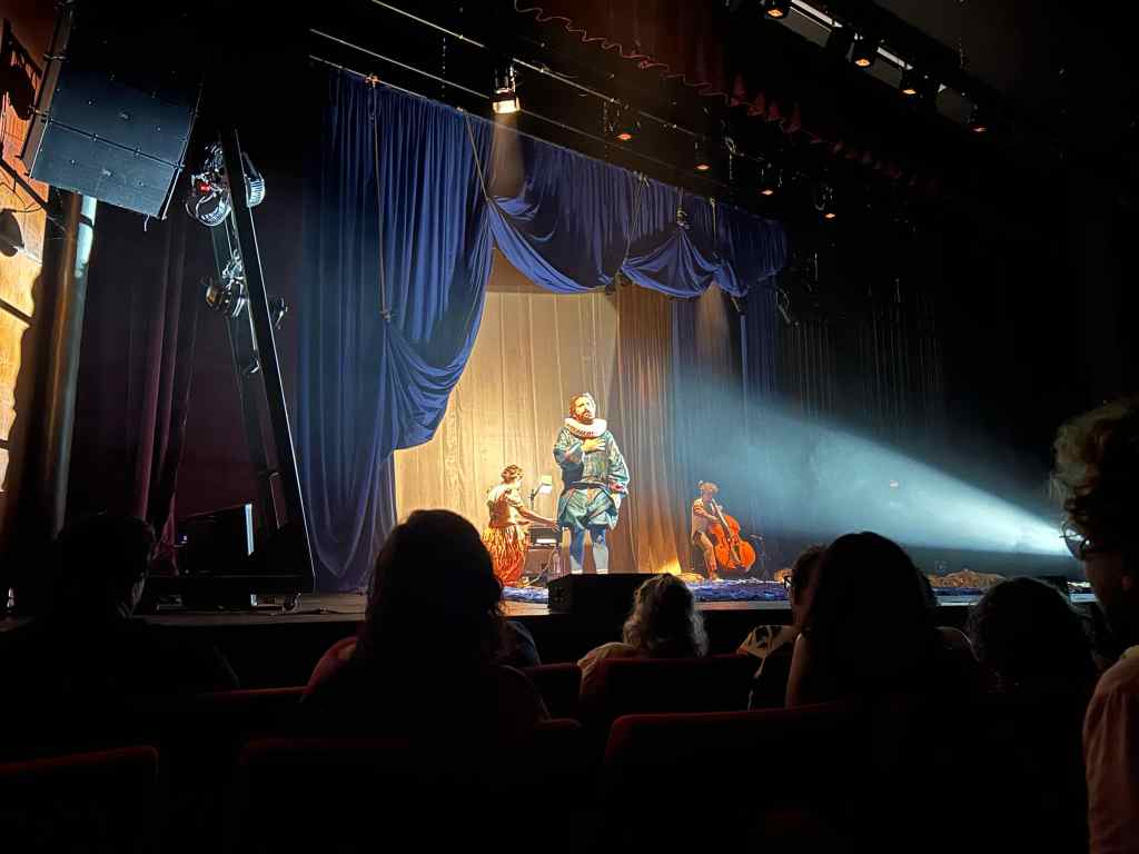 Depois das investidas por criações coletivas de improviso com seus parceiros comediantes da adolescência no “Zé – Zenas Emprovisadas” e com alguns companheiros do Porta dos Fundos no “Portátil”, “O Céu Língua” traz, assim como a peça “Sísifo”, esta feita em co-autoria com Vinícius Calderoni, o ator-autor representando um texto fixo, ainda que os inevitáveis cacos surjam a cada representação. É um peça para quem gosta de boa poesia, mas também de boa conversa e de boa música. Teve suas primeiras performances no fim de 2024 em Portugal e veio para o Rio de Janeiro, seguiu para Curitiba, Porto Alegre e está em São Paulo, de onde atravessará o Atlântico para reencontrar o público português. Sempre em temporadas de casa tão cheia que várias sessões extras acabam forçosamente acontecendo.